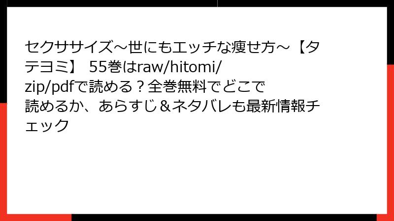 『セクササイズ~世にもエッチな痩せ方~』は、ダイエットファンタジーを通じたハーレムストーリー。ネタバレ満載のエンドはハーレム結婚ですが、感情ドラマが印象的。55巻はシーズン2の転換点で、興奮と緊張が混在。エロ好きにはおすすめですが、完結作なので一気読みがベストです!