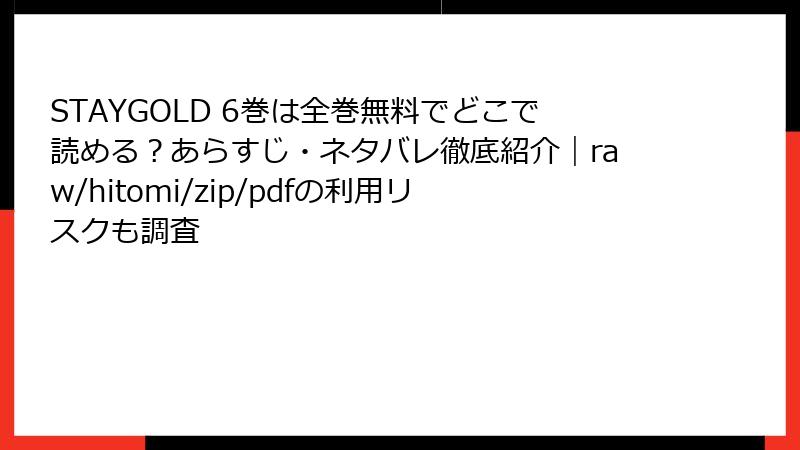 STAY GOLDを海賊版サイトで読むリスクの詳細