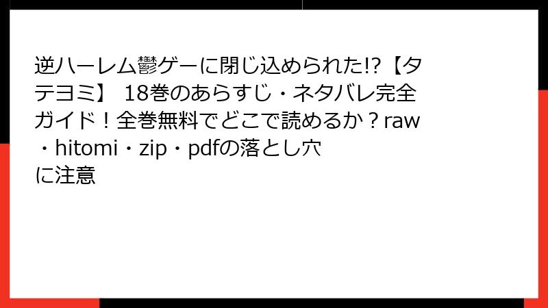 この記事では、人気のタテヨミコミック「逆ハーレム鬱ゲーに閉じ込められた!?」の18巻について、詳しいあらすじをブログ形式でお届けします。ネタバレを含むので、まだ読んでいない方は注意してください。シリーズ全体の魅力も交えながら、読み応えのある内容にまとめました。