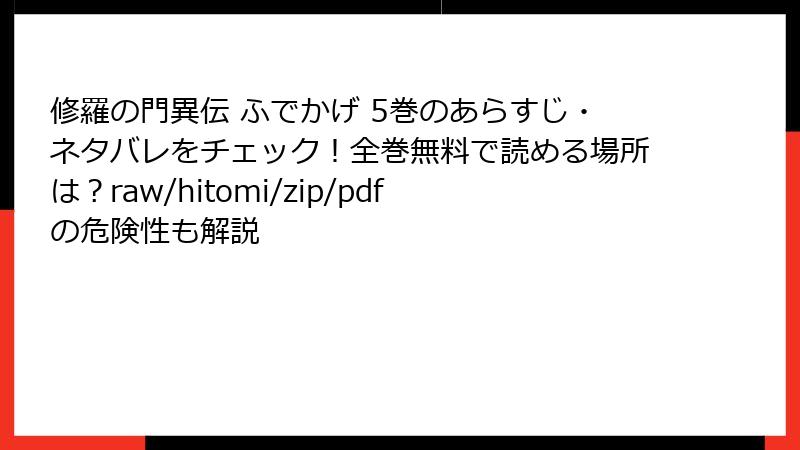 人気格闘漫画のスピンオフ『修羅の門異伝 ふでかげ』5巻を、raw、hitomi、zip、pdf、漫画バンクなどの海賊版サイトで無料で読もうとする人もいるかもしれません。しかし、これらのサイトを利用するのは非常に危険です。以下では、法的・セキュリティ面を中心に、詳しくリスクを解説します。海賊版は一見便利に見えますが、深刻な問題を引き起こす可能性が高いので、絶対に避けましょう。