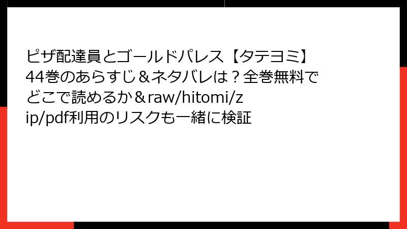 人気のタテヨミBL漫画「ピザ配達員とゴールドパレス」の44巻は、魅力的なストーリーとキャラクターでファンを魅了しています。しかし、海賊版サイト(raw、hitomi、zip、pdf、漫画バンクなど)で無料で読む行為は、さまざまなリスクを伴います。この記事では、そうしたサイトを利用する際の潜在的な危険性を詳しく解説します。合法的な手段で作品を楽しむことをおすすめしますが、ここではリスクに焦点を当てて、法的・セキュリティ・倫理的な側面から深掘りします。