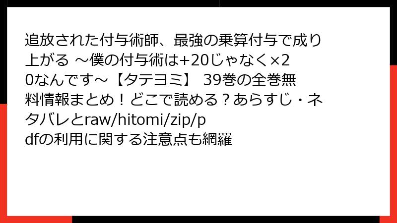 - 追放された付与術師、最強の乗算付与で成り上がる ~僕の付与術は+20じゃなく×20なんです~【タテヨミ】 39巻のネタバレ詳解