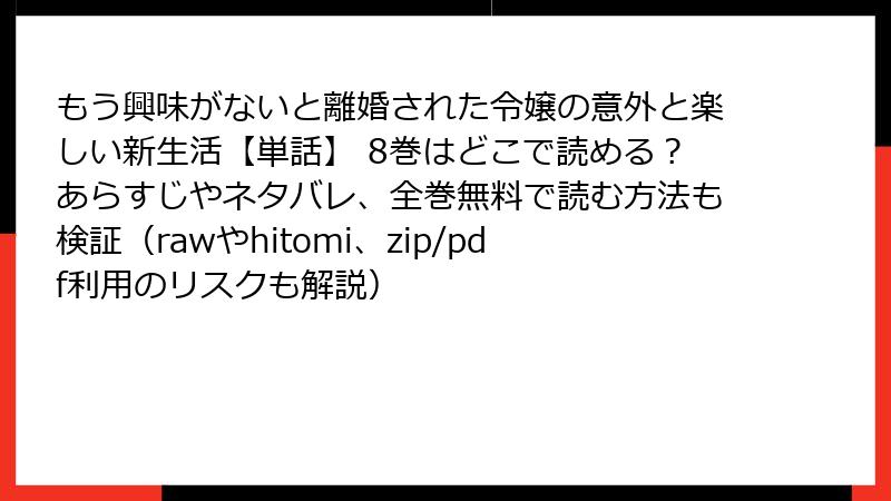 もう興味がないと離婚された令嬢の意外と楽しい新生活【単話】 8巻を海賊版サイトで読むリスク詳解