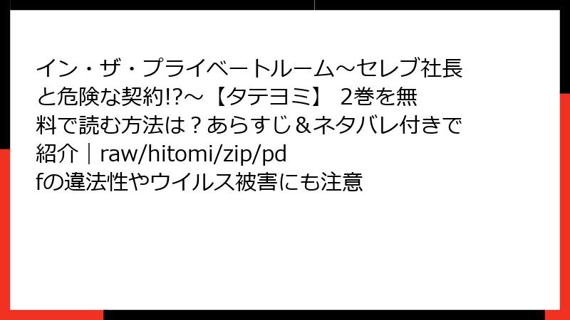 イン・ザ・プライベートルーム~セレブ社長と危険な契約!?~【タテヨミ】 2巻を海賊版サイトで読むリスク