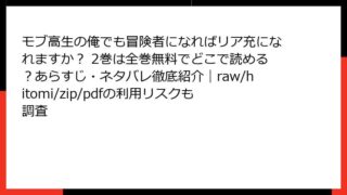 モブ高生の俺でも冒険者になればリア充になれますか? モブ高生の俺でも冒険者になればリア充になれますか? 2巻は全巻無料でどこで読める?あらすじ・ネタバレ徹底紹介|raw/hitomi/zip/pdfの利用リスクも調査 モブ高生の俺でも冒険者になればリア充になれますか? 2巻 徹底解説! あらすじと魅力に迫るこんにちは、漫画好きのブロガーです! 今日のレビューは、百均さん原作、さぎやまれんさん作画の人気コミック『モブ高生の俺でも冒険者になればリア充になれま... 2025.11.01 モブ高生の俺でも冒険者になればリア充になれますか?青年マンガ・コミック