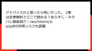 アドバイスかと思ったら呪いだった。 アドバイスかと思ったら呪いだった。 2巻は全巻無料でどこで読める?あらすじ・ネタバレ徹底紹介|raw/hitomi/zip/pdfの利用リスクも調査 アドバイスかと思ったら呪いだった。 2巻:日常の毒舌アドバイスをスカッと撃破する痛快ストーリーみなさん、こんにちは! 漫画好きのブロガー、マンガマニアです。今日は、犬山紙子さんの毒舌エッセイを原作に、たなかふじもとさんがコミカライズした人気... 2025.11.01 アドバイスかと思ったら呪いだった。女性マンガ・コミック