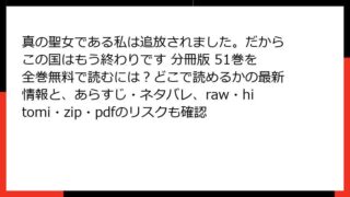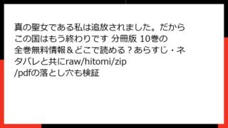 少女マンガ・コミック 真の聖女である私は追放されました。だからこの国はもう終わりです 分冊版 20巻はどこで読める?全巻無料の方法・あらすじ・ネタバレとraw/hitomi/zip/pdfの違法性も比較調査