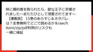 妹に婚約者を取られたら、獣な王子に求婚されました~またたびとして溺愛されてます~ 【連載版】 妹に婚約者を取られたら、獣な王子に求婚されました~またたびとして溺愛されてます~ 【連載版】 15巻のあらすじ&ネタバレは?全巻無料でどこで読めるか&raw/hitomi/zip/pdf利用のリスクも一緒に検証