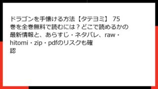 ドラゴンを手懐ける方法【タテヨミ】 ドラゴンを手懐ける方法【タテヨミ】 75巻を全巻無料で読むには?どこで読めるかの最新情報と、あらすじ・ネタバレ、raw・hitomi・zip・pdfのリスクも確認