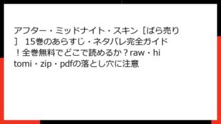 BLマンガ・コミック アフター・ミッドナイト・スキン[ばら売り] 15巻のあらすじ・ネタバレ完全ガイド!全巻無料でどこで読めるか?raw・hitomi・zip・pdfの落とし穴に注意 蜜を塗られたS級ガイド【タテヨミ】 27巻韓国発の人気BL漫画『蜜を塗られたS級ガイド【タテヨミ】』の27巻は、ガイドバースの世界観がさらに深みを増すエピソード満載の一冊です。S級ガイドの神堂新(しんどう あらた)とエスパーたちの絆が試され... 2025.11.02 BLマンガ・コミックアフター・ミッドナイト・スキン[ばら売り]