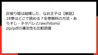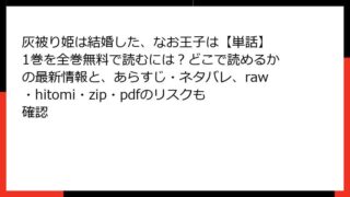 少女マンガ・コミック 灰被り姫は結婚した、なお王子は【単話】 18巻はどこで読める?全巻無料の方法・あらすじ・ネタバレとraw/hitomi/zip/pdfの違法性も比較調査
