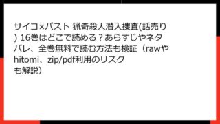 サイコ×パスト 猟奇殺人潜入捜査(話売り) サイコ×パスト 猟奇殺人潜入捜査(話売り) 16巻はどこで読める?あらすじやネタバレ、全巻無料で読む方法も検証(rawやhitomi、zip/pdf利用のリスクも解説)