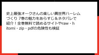 史上最強オークさんの楽しい異世界ハーレムづくり 史上最強オークさんの楽しい異世界ハーレムづくり 7巻の魅力をあらすじ&ネタバレで紹介!全巻無料で読めるサイトやraw・hitomi・zip・pdfの危険性も検証 史上最強オークさんの楽しい異世界ハーレムづくり 7巻:ハーレム拡大の波乱と新たなる絆こんにちは、異世界ファンタジー好きの皆さん! 今日のブログでは、人気コミックシリーズ「史上最強オークさんの楽しい異世界ハーレムづくり」の7巻に焦点を当てて、... 2025.11.02 史上最強オークさんの楽しい異世界ハーレムづくり少年マンガ・コミック