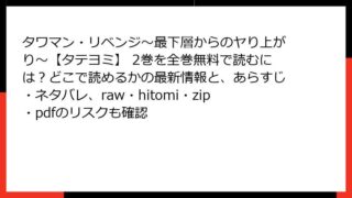 タワマン・リベンジ~最下層からのヤり上がり~ 2巻の詳細なあらすじこの記事では、人気タテヨミ漫画「タワマン・リベンジ~最下層からのヤり上がり~」の2巻に焦点を当てて、詳細なあらすじを紹介します。階層格差をテーマにした復讐劇がさらにエスカレー...