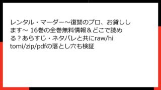 レンタル・マーダー~復讐のプロ、お貸しします~ 31巻のあらすじ詳解人気の復讐サスペンス漫画「レンタル・マーダー~復讐のプロ、お貸しします~」の31巻について、詳しくあらすじを掘り下げてみましょう。この巻は、物語の核心に迫る緊張感あふれる展...