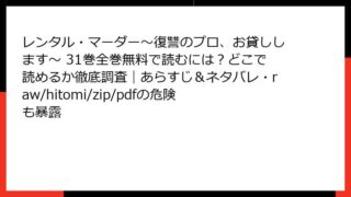 レンタル・マーダー~復讐のプロ、お貸しします~ レンタル・マーダー~復讐のプロ、お貸しします~ 31巻全巻無料で読むには?どこで読めるか徹底調査|あらすじ&ネタバレ・raw/hitomi/zip/pdfの危険も暴露