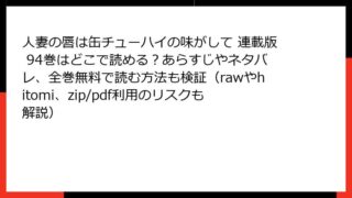 人妻の唇は缶チューハイの味がして 連載版 人妻の唇は缶チューハイの味がして 連載版 79巻はどこで読める?あらすじやネタバレ、全巻無料で読む方法も検証(rawやhitomi、zip/pdf利用のリスクも解説)