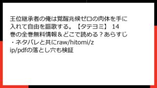 少年マンガ・コミック 王位継承者の俺は覚醒兆候ゼロの肉体を手に入れて自由を謳歌する。【タテヨミ】 14巻の全巻無料情報&どこで読める?あらすじ・ネタバレと共にraw/hitomi/zip/pdfの落とし穴も検証 王位継承者の俺は覚醒兆候ゼロの肉体を手に入れて自由を謳歌する。【タテヨミ】 14巻 徹底レビュー:自由の代償と新たな覚醒の予感こんにちは、マンガ好きのブロガーです! 今日も人気の異世界転生ファンタジーコミックから、王位継承者の俺は覚醒兆候ゼ... 2025.11.03 少年マンガ・コミック王位継承者の俺は覚醒兆候ゼロの肉体を手に入れて自由を謳歌する。【タテヨミ】