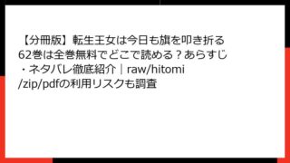 【分冊版】転生王女は今日も旗を叩き折る 【分冊版】転生王女は今日も旗を叩き折る 62巻は全巻無料でどこで読める?あらすじ・ネタバレ徹底紹介|raw/hitomi/zip/pdfの利用リスクも調査 【分冊版】転生王女は今日も旗を叩き折る 62巻:クソゲー世界の波乱続き! 詳細あらすじレビューこんにちは、ファンタジー漫画大好きブロガーのみゆきです! 今日は、乙女ゲーム転生ものの傑作として人気沸騰中の『転生王女は今日も旗を叩き折る』の分冊... 2025.11.03 【分冊版】転生王女は今日も旗を叩き折る少女マンガ・コミック
