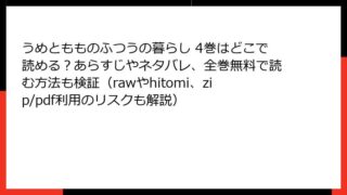 うめともものふつうの暮らし うめともものふつうの暮らし 4巻はどこで読める?あらすじやネタバレ、全巻無料で読む方法も検証(rawやhitomi、zip/pdf利用のリスクも解説) うめともものふつうの暮らし 4巻:ねこっぽい姉妹の穏やかな秋の日々こんにちは、漫画好きのブロガーです。今日は、藤沢カミヤ先生の人気作『うめともものふつうの暮らし』第4巻のあらすじを詳しくお届けします。この作品は、ねこみたいな可愛らしい姉妹、... 2025.11.03 うめともものふつうの暮らし青年マンガ・コミック