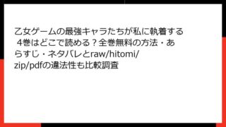 乙女ゲームの最強キャラたちが私に執着する 4巻 あらすじ詳解この記事では、人気漫画「乙女ゲームの最強キャラたちが私に執着する」の4巻について、詳細なあらすじを掘り下げて紹介します。4巻は第29話から第36話までを収録しており、主人公ダリアの...