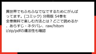 異世界でもふもふなでなでするためにがんばってます。(コミック) 分冊版 異世界でもふもふなでなでするためにがんばってます。(コミック) 分冊版 54巻を全巻無料で楽しむ方法とは?どこで読めるか、あらすじ・ネタバレ、raw/hitomi/zip/pdfの違法性も確認
