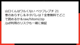 少女マンガ・コミック 山口くんはワルくない ベツフレプチ 21巻のあらすじ&ネタバレは?全巻無料でどこで読めるか&raw/hitomi/zip/pdf利用のリスクも一緒に検証 『山口くんはワルくない ベツフレプチ』21巻:甘く切ない青春ラブストーリーの新たな章こんにちは、漫画大好きブロガーのあかりです! 今日は、斉木優先生の大人気作『山口くんはワルくない ベツフレプチ』の21巻について、詳しくあらすじを掘り下げて... 2025.11.04 少女マンガ・コミック山口くんはワルくない ベツフレプチ