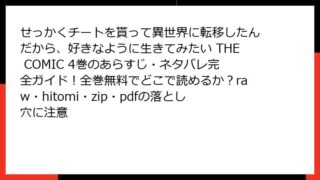 せっかくチートを貰って異世界に転移したんだから、好きなように生きてみたい THE COMIC せっかくチートを貰って異世界に転移したんだから、好きなように生きてみたい THE COMIC 4巻のあらすじ・ネタバレ完全ガイド!全巻無料でどこで読めるか?raw・hitomi・zip・pdfの落とし穴に注意
