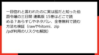 一目惚れと言われたのに実は囮だと知った伯爵令嬢の三日間 連載版 一目惚れと言われたのに実は囮だと知った伯爵令嬢の三日間 連載版 15巻はどこで読める?あらすじやネタバレ、全巻無料で読む方法も検証(rawやhitomi、zip/pdf利用のリスクも解説)