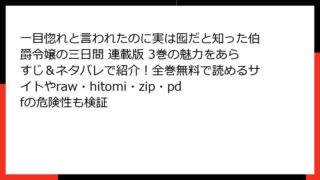 一目惚れと言われたのに実は囮だと知った伯爵令嬢の三日間 連載版 一目惚れと言われたのに実は囮だと知った伯爵令嬢の三日間 連載版 3巻の魅力をあらすじ&ネタバレで紹介!全巻無料で読めるサイトやraw・hitomi・zip・pdfの危険性も検証