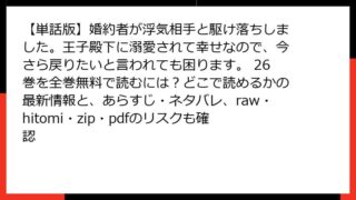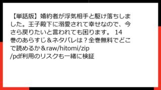 【単話版】婚約者が浮気相手と駆け落ちしました。王子殿下に溺愛されて幸せなので、今さら戻りたいと言われても困ります。 【単話版】婚約者が浮気相手と駆け落ちしました。王子殿下に溺愛されて幸せなので、今さら戻りたいと言われても困ります。 14巻のあらすじ&ネタバレは?全巻無料でどこで読めるか&raw/hitomi/zip/pdf利用のリスクも一緒に検証