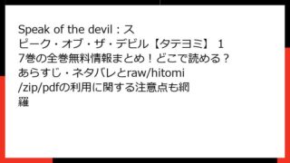 BLマンガ・コミック Speak of the devil:スピーク・オブ・ザ・デビル【タテヨミ】 17巻の全巻無料情報まとめ!どこで読める?あらすじ・ネタバレとraw/hitomi/zip/pdfの利用に関する注意点も網羅 トッケビは藪があれば集う【タテヨミ】 115巻神秘的なトッケビの世界が織りなす壮大なファンタジーBLが、ますます深みを増す115巻。人間と不死の存在の禁断の絆が、運命の渦に飲み込まれていく様子を描いたこの作品は、読者の心を鷲掴みにします。今... 2025.11.15 BLマンガ・コミックSpeak of the devil:スピーク・オブ・ザ・デビル【タテヨミ】