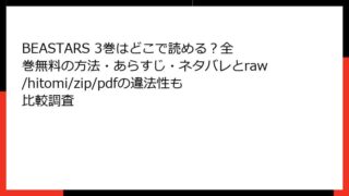 BEASTARS BEASTARS 3巻はどこで読める?全巻無料の方法・あらすじ・ネタバレとraw/hitomi/zip/pdfの違法性も比較調査 BEASTARS 3巻:レゴシの恋と本能の狭間で揺れる青春の闇こんにちは、漫画好きの皆さん! 今日は、板垣巴留先生の傑作『BEASTARS』の第3巻について、詳しくあらすじを掘り下げてお届けします。このシリーズは、肉食獣と草食獣が共存する学... 2025.11.04 BEASTARS少年マンガ・コミック