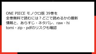 ONE PIECE モノクロ版 ONE PIECE モノクロ版 38巻はどこで読める?あらすじやネタバレ、全巻無料で読む方法も検証(rawやhitomi、zip/pdf利用のリスクも解説)
