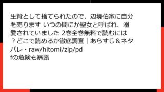 少女マンガ・コミック 生贄として捨てられたので、辺境伯家に自分を売ります いつの間にか聖女と呼ばれ、溺愛されていました 2巻全巻無料で読むには?どこで読めるか徹底調査|あらすじ&ネタバレ・raw/hitomi/zip/pdfの危険も暴露