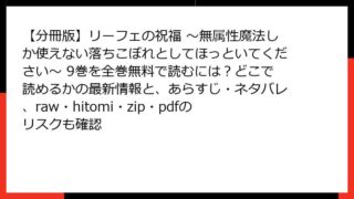 【分冊版】リーフェの祝福 ~無属性魔法しか使えない落ちこぼれとしてほっといてください~ 【分冊版】リーフェの祝福 ~無属性魔法しか使えない落ちこぼれとしてほっといてください~ 9巻を全巻無料で読むには?どこで読めるかの最新情報と、あらすじ・ネタバレ、raw・hitomi・zip・pdfのリスクも確認