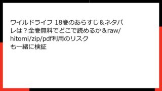 ワイルドライフ ワイルドライフ 18巻のあらすじ&ネタバレは?全巻無料でどこで読めるか&raw/hitomi/zip/pdf利用のリスクも一緒に検証 ワイルドライフ 18巻:獣医の情熱が試される極限の挑戦こんにちは、漫画好きの皆さん! 今日は、藤崎聖人先生の名作医療漫画『ワイルドライフ』の18巻について、詳しく深掘りしていきたいと思います。この作品は、元ヤンキーの獣医・岩城鉄生が、動物た... 2025.11.05 ワイルドライフ少年マンガ・コミック
