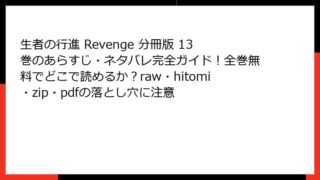 少年マンガ・コミック 生者の行進 Revenge 分冊版 13巻のあらすじ・ネタバレ完全ガイド!全巻無料でどこで読めるか?raw・hitomi・zip・pdfの落とし穴に注意 生者の行進 Revenge 分冊版 13巻:復讐の連鎖が深まる恐怖の章こんにちは、ホラー漫画好きのブロガーです! 今日のレビューは、みつちよ丸(原作)と佐藤祐紀(作画)による人気ホラーサスペンス『生者の行進 Revenge 分冊版』の13巻... 2025.11.06 少年マンガ・コミック生者の行進 Revenge 分冊版