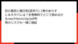 恋の星図と猫日和 2巻のあらすじ詳解この記事では、もとなおこ先生による人気コミック「恋の星図と猫日和」の2巻について、詳細なあらすじを掘り下げて紹介します。1巻で運命的な出会いを果たした主人公たちの関係が、さらに深みを増していく様子をお届け...