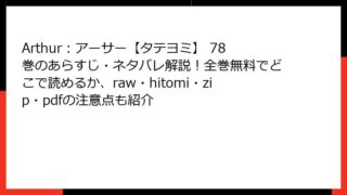 Arthur:アーサー【タテヨミ】 Arthur:アーサー【タテヨミ】 78巻のあらすじ・ネタバレ解説!全巻無料でどこで読めるか、raw・hitomi・zip・pdfの注意点も紹介