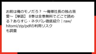 お前は俺のモノだろ? ~俺様社長の独占溺愛~【単話】 お前は俺のモノだろ? ~俺様社長の独占溺愛~【単話】 8巻は全巻無料でどこで読める?あらすじ・ネタバレ徹底紹介|raw/hitomi/zip/pdfの利用リスクも調査 お前は俺のモノだろ? ~俺様社長の独占溺愛~ 8巻 あらすじレビュー:不器用な恋が深まるクライマックスへこんにちは、漫画好きのブロガーです! 今日は、ピュアでこじれたラブストーリーが魅力の人気コミカライズ作品、『お前は俺のモノだろ? ~俺様... 2025.11.07 お前は俺のモノだろ? ~俺様社長の独占溺愛~【単話】少女マンガ・コミック