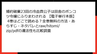 婚約破棄23回の冷血貴公子は田舎のポンコツ令嬢にふりまわされる 【電子単行本版】 婚約破棄23回の冷血貴公子は田舎のポンコツ令嬢にふりまわされる 【電子単行本版】 4巻はどこで読める?全巻無料の方法・あらすじ・ネタバレとraw/hitomi/zip/pdfの違法性も比較調査