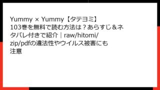 Yummy × Yummy【タテヨミ】 Yummy × Yummy【タテヨミ】 103巻を無料で読む方法は?あらすじ&ネタバレ付きで紹介|raw/hitomi/zip/pdfの違法性やウイルス被害にも注意 Yummy × Yummy【タテヨミ】103巻の魅力に迫る! 詳細あらすじレビューみなさん、こんにちは! 漫画好きのブログ管理人です。今日は、熱い人気を博している韓国発のグルメ×ラブコメディ作品『Yummy × Yummy【タテヨミ】』の1... 2025.11.07 Yummy × Yummy【タテヨミ】青年マンガ・コミック
