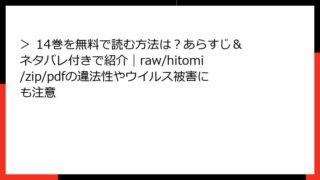 > > 14巻を無料で読む方法は?あらすじ&ネタバレ付きで紹介|raw/hitomi/zip/pdfの違法性やウイルス被害にも注意 SPY×FAMILY 14巻:星と雷の期末テストの結末と家族の絆みなさん、こんにちは! スパイアクションとハートウォーミングな家族コメディが融合した大人気漫画『SPY×FAMILY』の14巻が発売されてから、もう少し経ちましたが、改めてその... 2025.11.07 少年マンガ・コミック>
