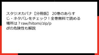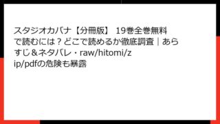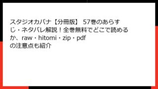 スタジオカバナ【分冊版】 スタジオカバナ【分冊版】 8巻はどこで読める?あらすじやネタバレ、全巻無料で読む方法も検証(rawやhitomi、zip/pdf利用のリスクも解説)