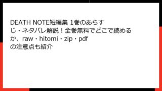 DEATH NOTE短編集 DEATH NOTE短編集 1巻のあらすじ・ネタバレ解説!全巻無料でどこで読めるか、raw・hitomi・zip・pdfの注意点も紹介 DEATH NOTE短編集 1巻:死神のノートが紡ぐ新たな物語の世界へこんにちは、マンガ好きの皆さん! 今日は、伝説のサスペンス・ミステリー『DEATH NOTE』の世界をさらに広げる短編集についてお話しします。原作の熱狂的なファンならずと... 2025.11.07 DEATH NOTE短編集少年マンガ・コミック