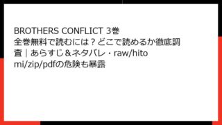 BROTHERS CONFLICT BROTHERS CONFLICT 3巻全巻無料で読むには?どこで読めるか徹底調査|あらすじ&ネタバレ・raw/hitomi/zip/pdfの危険も暴露 BROTHERS CONFLICT 3巻:家族の絆が揺らぐ、甘く切ない一歩みなさん、こんにちは! 逆ハーレムラブコメの金字塔ともいえる『BROTHERS CONFLICT』(通称ブラコン)のコミック版、第3巻のあらすじを今日は詳しくお届けし... 2025.11.07 BROTHERS CONFLICT少女マンガ・コミック