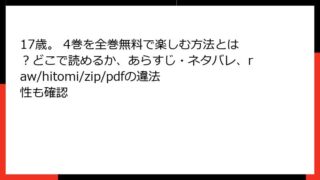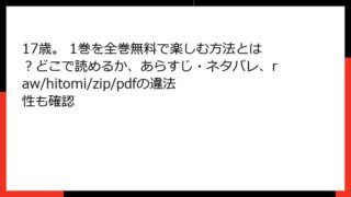 17歳。 17歳。 1巻を全巻無料で楽しむ方法とは?どこで読めるか、あらすじ・ネタバレ、raw/hitomi/zip/pdfの違法性も確認