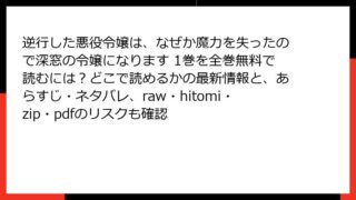 少女マンガ・コミック 逆行した悪役令嬢は、なぜか魔力を失ったので深窓の令嬢になります 4巻を無料で読む方法は?あらすじ&ネタバレ付きで紹介|raw/hitomi/zip/pdfの違法性やウイルス被害にも注意