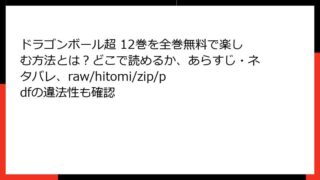 ドラゴンボール超 ドラゴンボール超 12巻を全巻無料で楽しむ方法とは?どこで読めるか、あらすじ・ネタバレ、raw/hitomi/zip/pdfの違法性も確認 ドラゴンボール超 12巻の魅力に迫る! モロ編の激闘が炸裂する必読の一冊こんにちは、ドラゴンボールファン必見のブログへようこそ! 今回は、鳥山明先生監修のもと、とよたろう先生が描く大人気続編『ドラゴンボール超』の第12巻について、詳しくあら... 2025.11.08 ドラゴンボール超少年マンガ・コミック